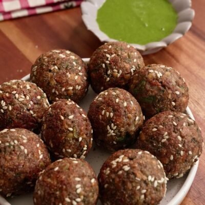 SHAPE INTO SMALL BALLS AND COOK IN AN APPE PAN WITH OIL UNTIL GOLDEN OR AIR FRY AT 200°C FOR 15 MINUTES. |