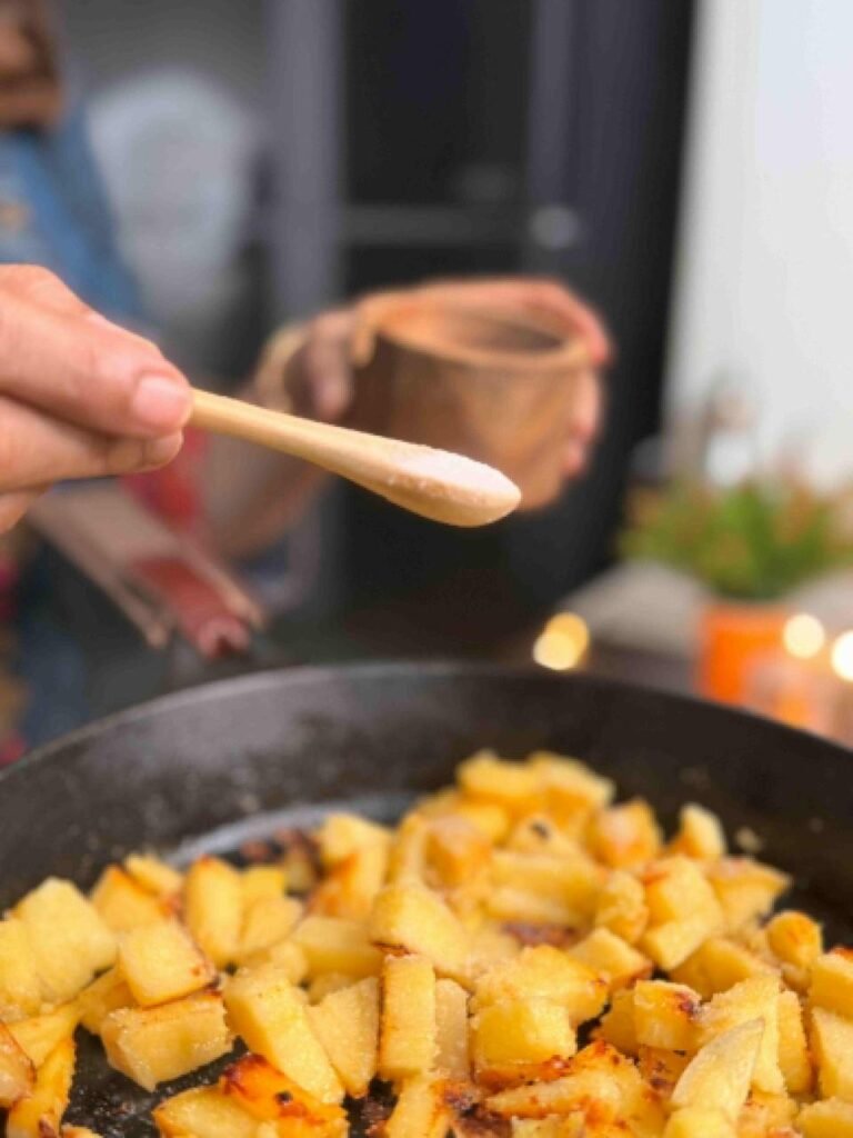 - Saute on a medium flame until the edges become golden and crispy. Remove and keep them aside.
