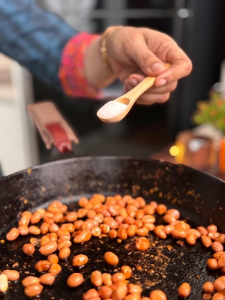 - Saute until the peanuts are perfectly toasted and crispy. Yeh crunch salad mein bahut zaroori hai!