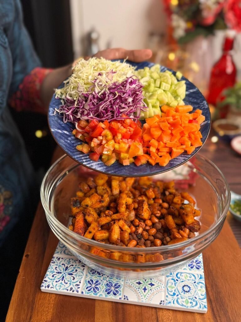 Yaar, let’s be honest—the word “salad” usually sounds like a punishment, doesn’t it? When we think of salads, we imagine sad, limp lettuce leaves and zero flavour. Lekin ruko! This Kala Chana Sweet Potato Salad is here to completely change your mind. This isn’t just a side dish; it’s a full-on flavor explosion that will make you forget you’re even eating something healthy. What makes it stand out from those boring, watery salads? It’s the brilliant contrast of textures! You have the earthy, protein-packed Kala Chana, the buttery sweetness of roasted sweet potatoes, and the ultimate crunch from masala peanuts.