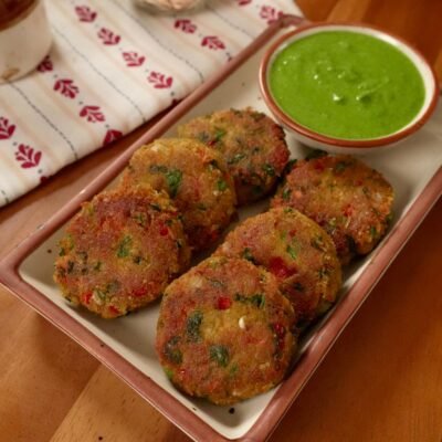 SOYA PANEER TIKKI WITH CORIANDER CHUTNEY